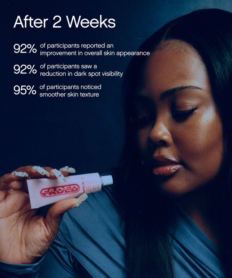 This hyperpigmentation-safe serum visibly reduces stubborn discoloration, post-blemish marks, scars, and spots—for all ethnicities and skin shades. Gentle enough for daily use, it produces visible results in as little as two weeks.